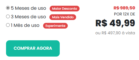 Pagamento no cartão ou à vista no boleto ou pix!
